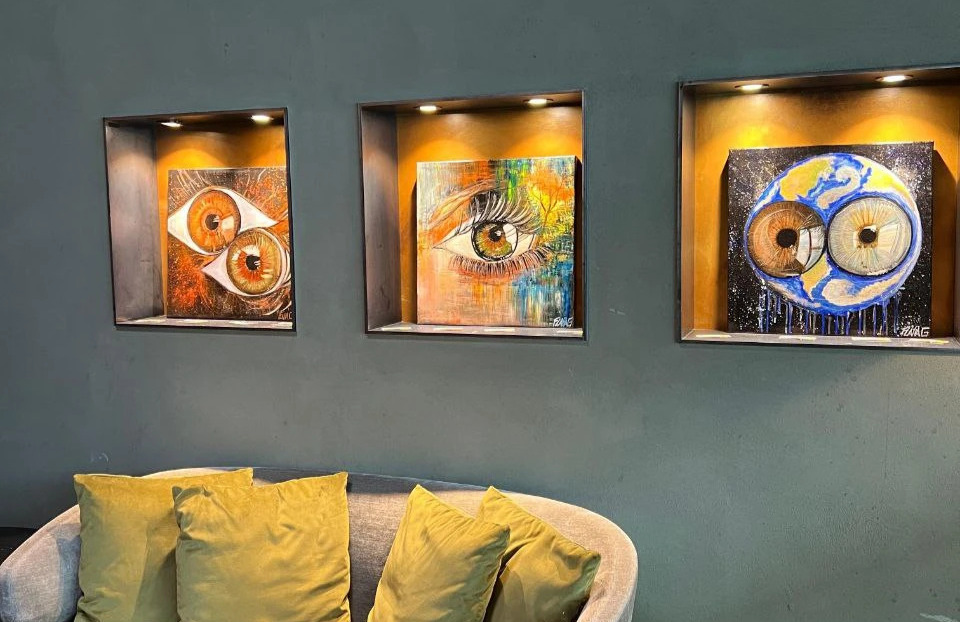Le opere esposte accompagnano l’esperienza degli ospiti, integrandosi con gli spazi del ristorante e creando un dialogo naturale tra arte e ospitalità.